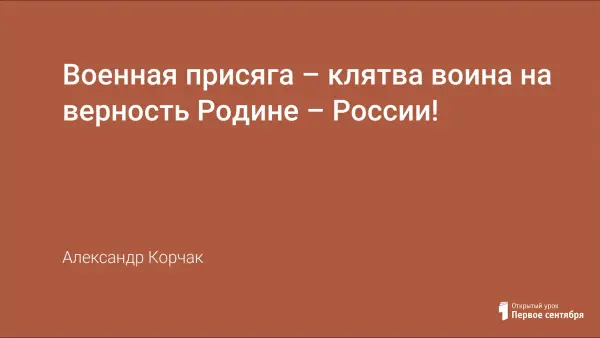 Учащиеся знакомятся с историей военной присяги в России. В статье представлена презентация об истории военной присяги, фотоматериалы и стихи к уроку.