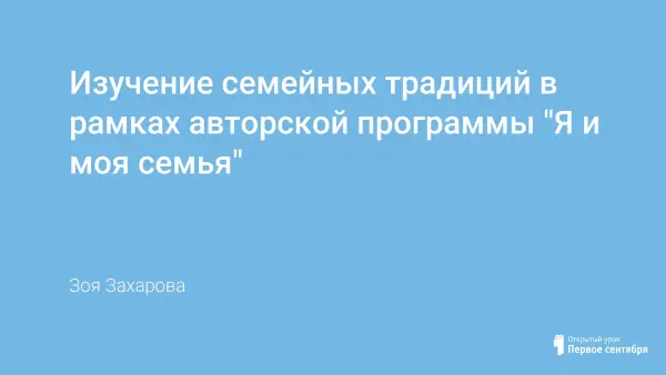 Авторская программа предназначена для совместной работы учащихся начальных классов, их родителей и школы по изучению и пропаганде семейных традиций, родословной семей, что способствует более близкому общению членов семьи, так как помощниками в исследованиях детей будут родители, бабушки и дедушки.