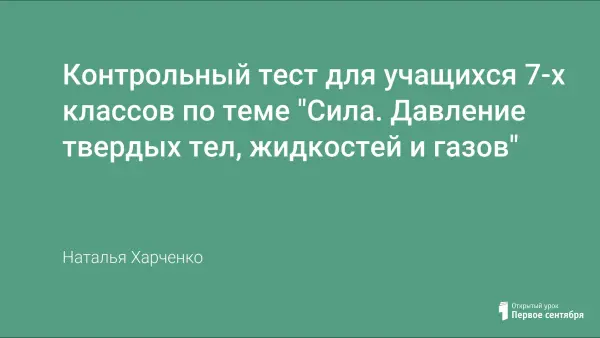 Тест оперативно корректирует учебный процесс, экономит время на опрос, позволяет разнообразить процесс обучения. Тест предназначен для контроля знаний учащихся 7-х классов. В содержание теста включены все основные вопросы курса. Предназначен для текущего контроля знаний учащихся по физике. Тест рассчитан на 20–30 мин. Ответы к данному тесту прилагаются.