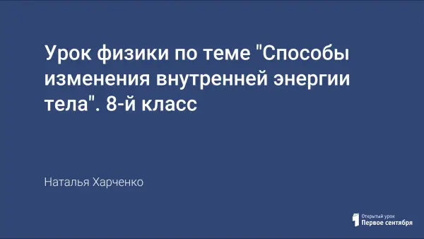 Урок разработан на основе материалов курса физики 8-го класса. Содержит описание опытов для выяснения способов изменения внутренней энергии тела. Для закрепления изученного материала предлагаются качественные задачи.