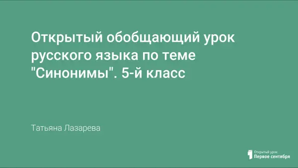 Обобщение и систематизация материала, изученного по теме "Синонимы" в 5-м классе, проводится с использованием компьютерной презентации. Предлагаются различные виды заданий разноуровневого характера, способствующие развитию коммуникативных, речевых умений и навыков учащихся.
