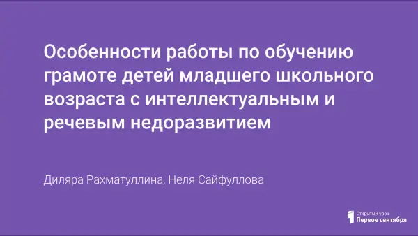 Особенности работы по обучению грамоте детей младшего школьного возраста с интеллектуальным и речевым недоразвитием