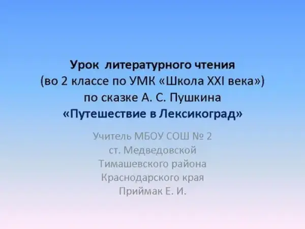 "Путешествие в Лексикоград" УМК "Школа XXI века". 2-й класс