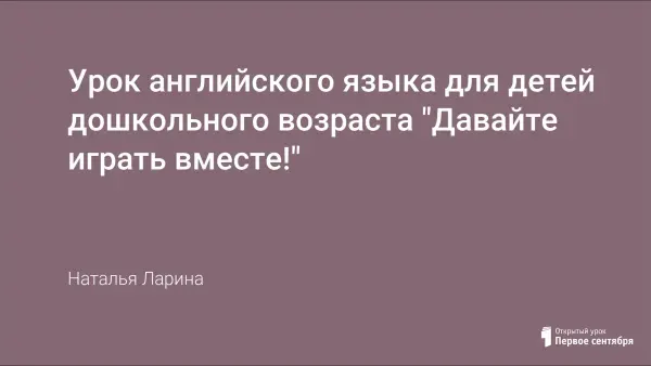 Данный урок помогает детям дошкольного возраста быстро включиться в предлагаемые ситуации, активно усвоить разговорные клише, участвовать в развитии сюжета урока, эффективно запоминать материал на английском языке. Занятие можно организовать на базе подготовительной группы детского сада или в рамках школы будущего первоклассника.