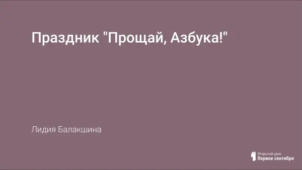 Праздник для первоклассников. На празднике дети читают стихи, разыгрывают сценки для гостьи – азбуки. Азбука предлагает свои задания-конкурсы. Для участия в конкурсах создаются команды детей и команды родителей. Количество участников может быть разным, важно чтобы все дети приняли участие хотя бы в одном из испытаний.