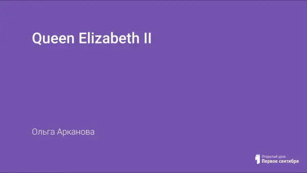 Представленный урок английского языка «Королева Елизавета II» в 6-м классе знакомит учащихся с биографией Елизаветы II и ее ролью в стране. Урок основан на работе с аутентичными текстами информационных листков, выпущенных в Британии. На уроке используются технологии личностно ориентированного обучения, технология развития критического мышления через чтение и письмо и информационные технологии.
