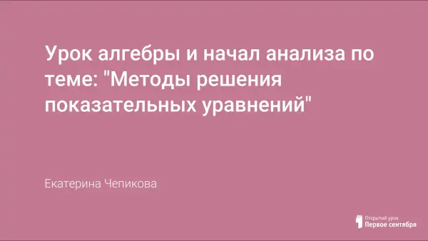 Рассматриваются методы решения показательных уравнений: уравнивание показателей степени, введение новой переменной, функционально- графический. Изучение методов решения показательных уравнений спланировано с использованием разных форм организации учебной деятельности учащихся: индивидуальной, парной и групповой. Актуализация знаний с использованием межпредметной связи с физикой. Открытие новых знаний построено через постановку проблемы и в технологии деятельностного подхода.