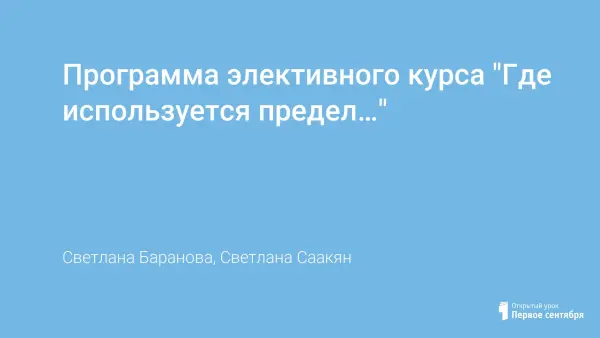 Курс предназначен для учащихся 10-11-х классов. Концепция данной программы заключается в пропедевтике темы «Пределы», изучаемой в большинстве вузов. Отличительной особенностью данного элективного курса от уже существующих является наличие в нем задач прикладного характера. Цели курса: создание мотивационной основы для осознанного выбора дальнейшего профиля обучения, формирование образовательных, коммуникативных и информационных компетентностей для продолжения математического образования в вузах.
