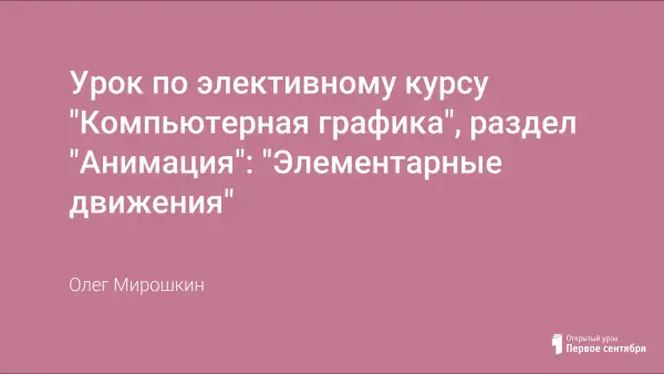 Данный урок является первым при знакомстве с компьютерной анимацией. Во время выполнения практических заданий учащиеся знакомятся с интерфейсом программы Corel R.A.V.E. Анимационные проекты, которые мы будем создавать в данной программе, называются фильмами. Начнем с элементарных движений, дальше будем их усложнять.