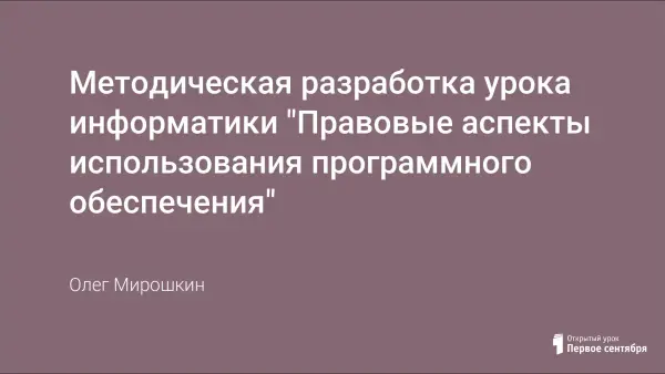 Представь, что программа - это буханка хлеба, которую ты ежедневно покупаешь в магазине. Мысли о том, что ее можно взять бесплатно и выйти из магазина, не оплатив покупку, даже не возникает. Это просто неприемлемо! Так чем же отличается кража буханки от кражи, например, Total Commander'a? По большому счету, ничем! Урок обеспечивает соответствующий уровень знаний правовых вопросов, навыки применения их на практике.