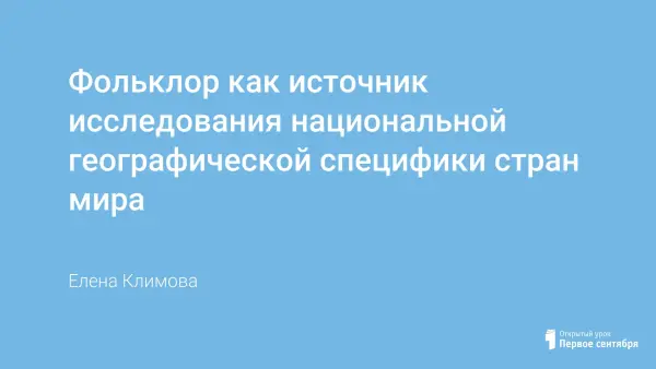 Пословицы и поговорки – это живая народная мудрость, которая всегда привлекала людей. Историк в них находит свидетельства далекой старины, этнограф отыскивает отражение уже исчезнувших обычаев, а для географа наиболее интересна национальная географическая специфика пословичного фольклора. Именно поэтому пословицы и поговорки разных стран мира служат прекрасными источниками исследований различных компонентов природы на уроках географии.