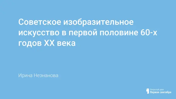 Урок изучения нового материала выявляет основные идеи изобразительного искусства СССР на примере произведений художников в 60-х годов ХХ века. На уроке идет обсуждение, актуальны ли идеалы 60-х годов ХХ века для XXI века; рассматриваются направления в изобразительном искусстве первой половины 60-х годов ХХ века с использованием презентации.