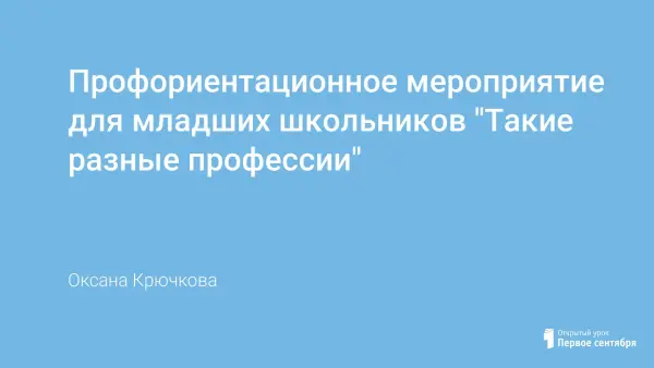 Работа по профориентации в школе – это всестороннее развитие личности подрастающего поколения, раскрытие всех его способностей, талантов, творческих сил и формирование духовной культуры. Основными задачами профориентации являются воспитание мотивированного отношения к труду и формирование соответствующих качеств личности (умения работать в коллективе, чувства самоутверждения, нужности, ответственности). Мероприятие «Такие разные профессии» рекомендовано использовать при работе с обучающимися младшего школьного возраста.