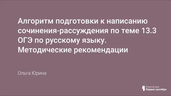 Алгоритм подготовки к написанию сочинения-рассуждения по теме 13.3 ОГЭ по русскому языку. Методические рекомендации