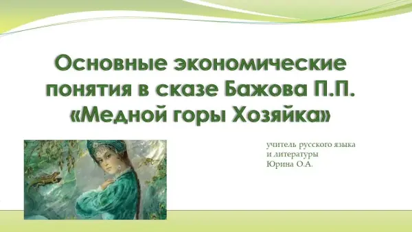 На основе сказа Бажова П.П. «Медной горы Хозяйка» рассматриваются основные экономические понятия.