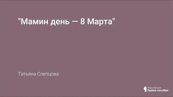 Представленное занятие "Мамин день - 8 Марта" прививает детям любовь, уважение к женщине, заботу и внимание к своим мамам, бабушкам, сестрам, учителям, одноклассницам.