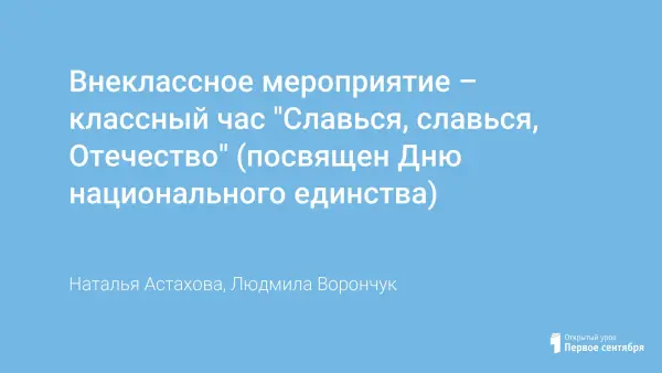 Внеклассное мероприятие – классный час "Славься, славься, Отечество" (посвящен Дню национального единства)