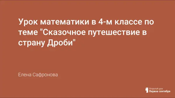 Урок обобщения знаний в 4-м классе, проводится в форме сказочного путешествия. Цель урока – обобщить полученные знания о правильных и неправильных дробях, закрепить умение складывать и вычитать обыкновенные дроби, выделять целую часть, решать задачи на нахождение части от числа и числа по его части.