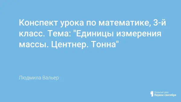 Данный конспект является одним из вариантов проведения урока математики по теме: "Единицы измерения массы. Центнер. Тонна". Цели урока: систематизировать знания детей о единицах измерения массы. Ввести новые единицы измерения массы: тонна, центнер, работать над умением переводить величины из одних единиц измерения в другие, отрабатывать навыки устных вычислений, решать задачи на повторение.