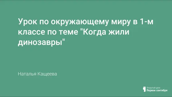 Урок по окружающему миру в 1-м классе по теме "Когда жили динозавры". На этом уроке дети знакомятся с наиболее интересными пресмыкающимися, родичами наших ящериц, крокодилов и змей, с научным крещением древних ящеров, периодами их жизни, расселением по всем континентам, с разными видами динозавров (хищными и травоядными), их размерами.