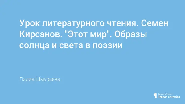Урок литературного чтения. Семен Кирсанов. "Этот мир". Образы солнца и света в поэзии