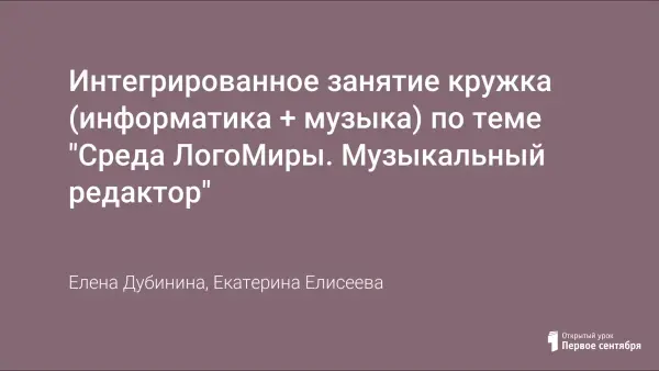 Интегрированное занятие кружка (информатика + музыка) по теме "Среда ЛогоМиры. Музыкальный редактор"