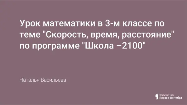 На данном уроке дети знакомятся с новой темой по математике «Скорость. Время. Расстояние». В игровой форме ученики решают проблемную ситуацию, делают самостоятельно выводы, с увлечением работают, выполняя задания мультипликационных героев. Урок направлен на развитие познавательных интересов и повышение мотивации к обучению.