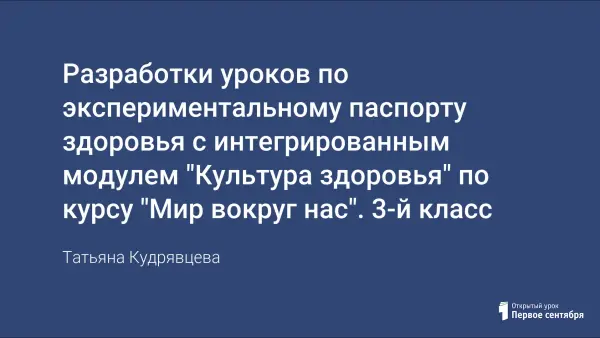 В методическом пособии предлагаются интегрированные уроки по экспериментальному Ппспорту здоровья по программе "Культура здоровья" и учебному курсу "Мир вокруг нас" для учащихся начальных классов. Методическое пособие предназначено помочь начинающим учителям начальных классов общеобразовательных школ в проведении уроков здоровья.