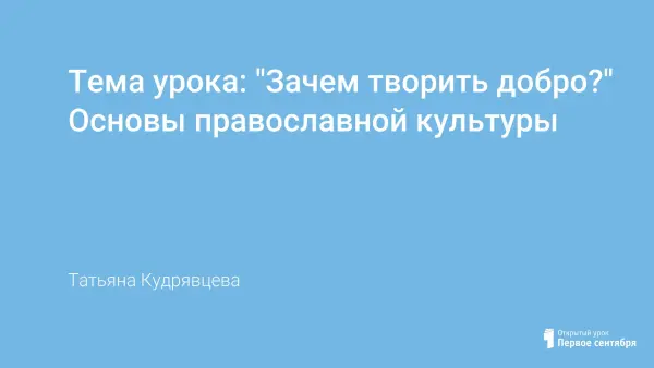 Проблема духовно-нравственного воспитания школьников актуальна в школе. Открытый урок знакомит с духовными ценностями и традициями православной культуры. Цель урока: помочь учащимся осмыслить нравственные христианские основы; понять христианские позиции по отношению к человеческому эгоизму; показать значение православной культуры в жизни общества, воспитании духовно-нравственных качеств.