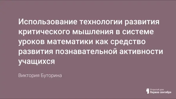 Если в системе использовать технологию развития критического мышления, то процесс обучения математической грамотности будет более успешным. Внедрение технологии развития критического мышления в практику обучения возможно при изучении любой темы курса математики и в любом классе. Технологию можно использовать как при изучении нового материала, так и при проверке степени усвоения учащимися теоретического материала по теме.