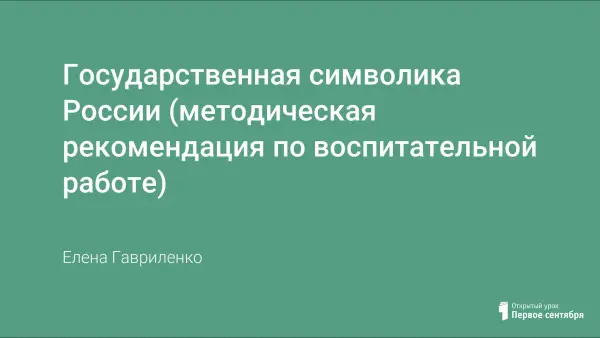 Государственная символика (герб, флаг и гимн) России – это сокровища русской национальной культуры! Отдавая почести символам нашего государства, мы проявляем любовь и уважение к своей Родине, испытывая чувство гордости за принадлежность к гражданам России. Педагоги должны способствовать воспитанию в учащихся патриотизма, помочь детям проникнуться уважением к истории своей страны, любовью к родному Отечеству.