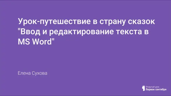 Обобщающий урок по теме "Ввод и редактирование текста в текстовом процессоре MS Word" проводится в форме игры-путешествия в страну сказок, где ученики в интересной, ненавязчивой и нестандартной форме выполняют ряд заданий по вводу и редактированию текста.