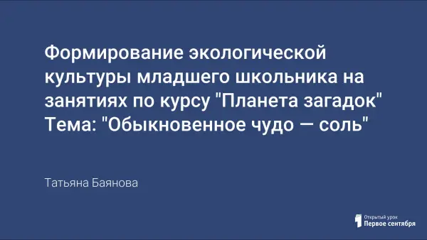 Формирование экологической культуры младшего школьника на занятиях по курсу "Планета загадок" Тема: "Обыкновенное чудо — соль"