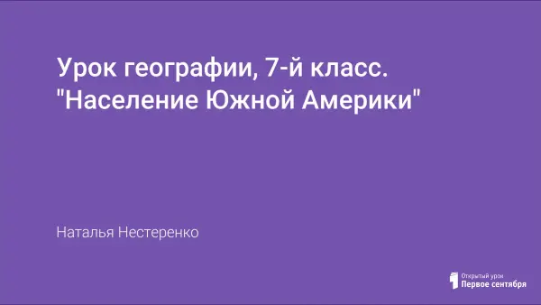 Урок географии в 7-м классе по теме "Население Южной Америки" продолжает формировать у учащихся представление о населении Земли, знакомит с современным населением Южной Америки.