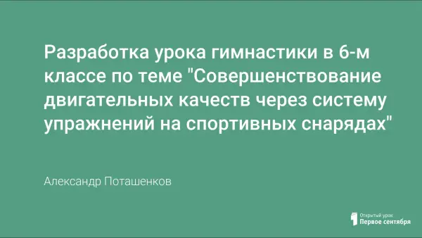 Представлена разработка урока гимнастики в 6-м классе по теме "Совершенствование двигательных качеств через систему упражнений на спортивных снарядах".