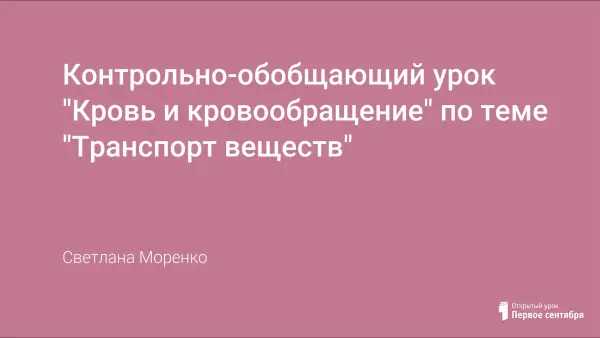 По теме "Транспорт веществ" проводится контрольно-обобщающий урок "Кровь и кровообращение". В течение урока учащиеся показывают знание терминов по данной теме, выполняют тестирование. Урок проходит плодотворно, все ученики за урок получают оценки.