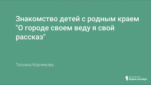 Очень важно с детства воспитывать у ребенка любовь к родине. А начинать нужно с воспитания любви к родному краю, к малой Родине. Для реализации поставленных задач разработаны занятия по знакомству детей с родным городом, с его достопримечательностями.