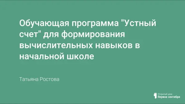 Одна из задач курса математики в начальной школе - формирование вычислительных навыков. Для решения этой задачи естественно использование информационных технологий. Представлена обучающая программа "Устный счет". Большое количество уровней сложности, интерактивность, отсутствие негативных эмоций, связанных с оценкой выполнения заданий, позволяют добиться хороших результатов в овладении навыками устного счета.