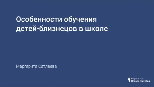 Во все времена рождение близнецов было необычным явлением, вызывавшим удивление и любопытство окружающих. Близнецы понимают: они особенные, и поэтому на многое в этом мире способны, но мир у каждого из них должен быть свой. Актуальность проблемы определяется тем, что далеко не все учителя стоят на позиции: каждый из пары близнецов имеет свои особенности, которые необходимо развивать в процессе обучения.
