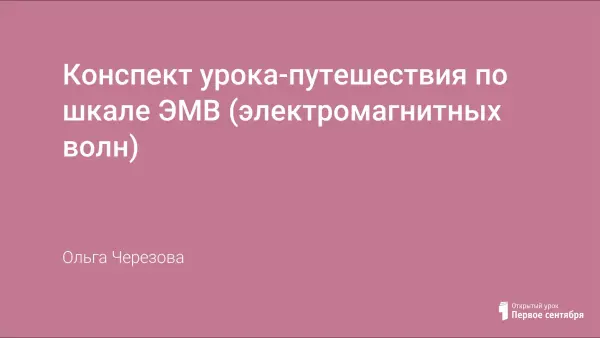 Данное мероприятие - урок-путешествие по шкале ЭМВ проводится для учащихся 11-го класса, дает возможность обобщить и систематизировать знания учащихся, использовать приобретенные знания для объяснения влияния различных участков спектра ЭМВ на здоровье человека, развивать интеллектуальные и творческие способности учащихся в процессе самостоятельного приобретения знаний по физике с использованием различных источников информации, а также представление результатов своей деятельности в различной форме: буклеты, брошюры, презентации, фотовыставки.
