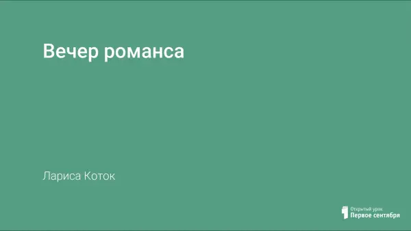 Интерес школьников к литературе с каждым годом угасает все больше и больше. Чтобы привлечь внимание учащихся 9–10-х классов к классической поэзии, научить их слышать не только музыку стиха, но и стихи в музыке, разработан данный сценарий вечера романса. Материалы сценария можно использовать как на уроках литературы, так и во внеурочной деятельности.