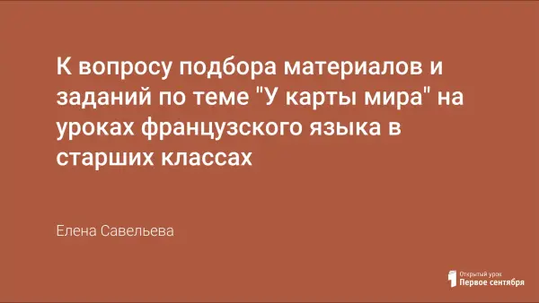 В статье речь идет о проблеме подбора учебно-дидактических материалов по теме "У карты мира" на уроках французского языка в старших классах. Данная учебно-методическая разработка позволит расширить словарный запас и приобрести дополнительные лингвострановедческие знания учащимися.