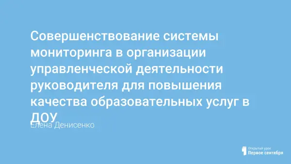 Ключевой вопрос модернизации образования - повышение его качества, приведение в соответствие с мировыми стандартами. Опыт работы будет полезен всем руководителям дошкольных учреждений, т.к. позволяет отслеживать работу своего учреждения в динамике не за один год. Это дает возможность руководителю определить состояние и тенденции изменения качественных параметров в деятельности учреждения.