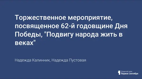 Торжественное мероприятие, посвященное 62-й годовщине Дня Победы, "Подвигу народа жить в веках"