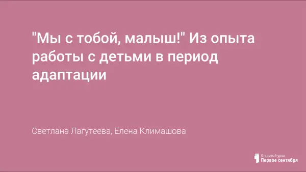 "Мы с тобой, малыш!" Из опыта работы с детьми в период адаптации