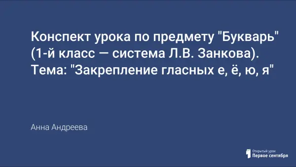 Представлен конспект урока в 1-м классе по закреплению понятия гласных букв.