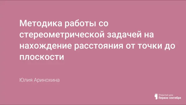 Представлена методика работы со стереометрической задачей на нахождение расстояния от точки до плоскости.
