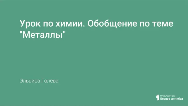 Данный урок проводится в 9-м классе как обобщающий. Обобщение дается по изученной теме "Металлы" с использование игровых приемов. Завершает тему контрольная работа. Урок начинается с повторения положения металлов в периодической системе химических элементов Д.И. Менделеева. В ходе урока ребята повторяют физические и химические свойства металлов, их нахождение в природе.