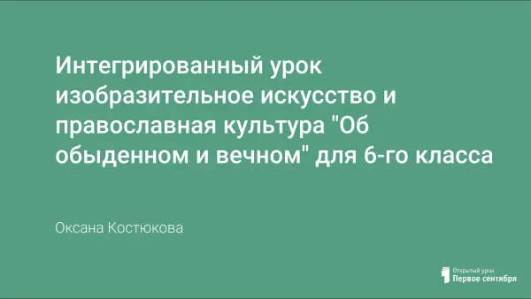 Интегрированный урок (изобразительное искусство и православная культура) в 6-м классе служит изучению шедевров мирового искусства и постижению характерных особенностей мировоззрения иконописцев. Когда верующий человек смотрит на икону Пресвятой Богородицы, в его душе появляется свет нежной любви, как в детстве при встрече с самым дорогим человеком – мамой. Практической частью является создание зримых образов слов: нежность, любовь, забота, доброта, строгость, мудрость.