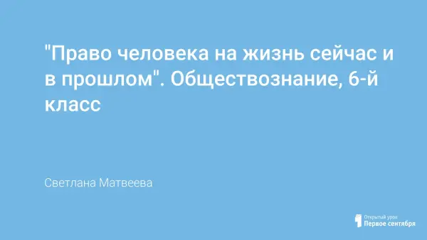 "Право человека на жизнь сейчас и в прошлом". Обществознание, 6-й класс
